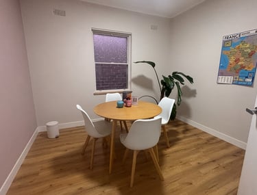 We offer a friendly and relaxed environment where students can truly feel at home. Our centre features three versatile spaces for classes, each with its own unique atmosphere. The main room is spacious and bright, opening onto a charming courtyard, while the adjacent kitchen is used to offer drinks and French tastings to students (but you’ll have to order them in French!). The study room provides a cosy, focused setting ideal for one-on-one lessons, and the back room offers a warm, welcoming feel perfect for small evening groups.