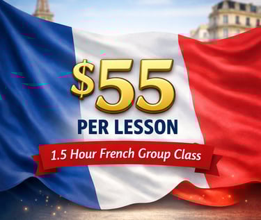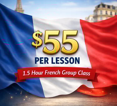 Each adult class at A French Journey runs for a full 1 hour and 30 minutes of engaging, interactive French learning and is charged at $55 per lesson.